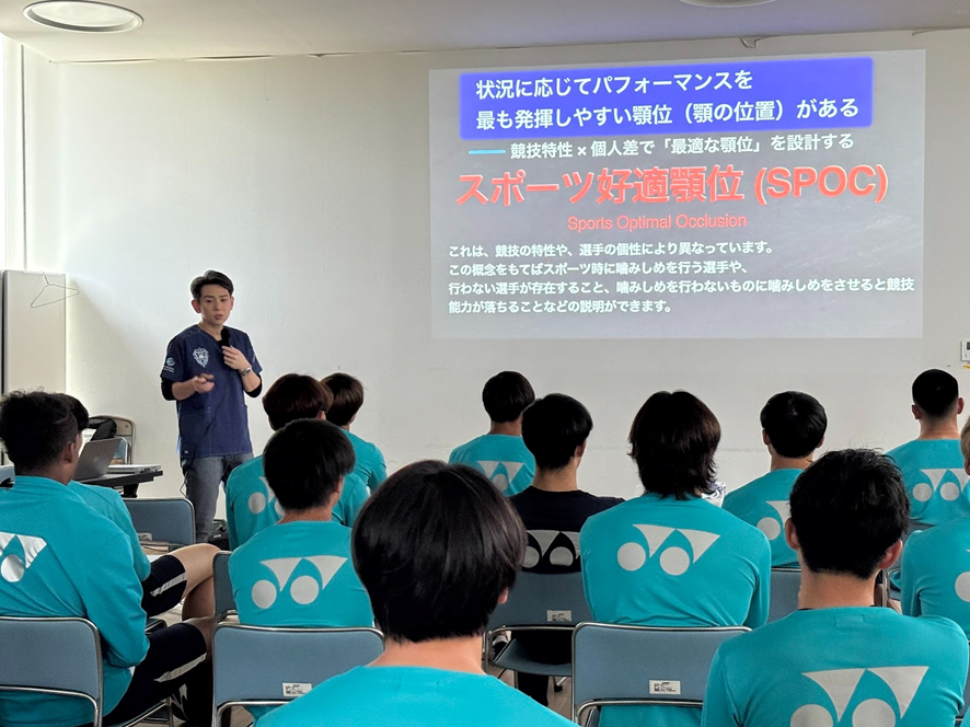 スポーツ選手のパフォーマンスに口腔環境が大きく影響することや、顎の動きや位置も重要であることなどを、実例を含めて解説しました。